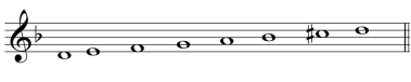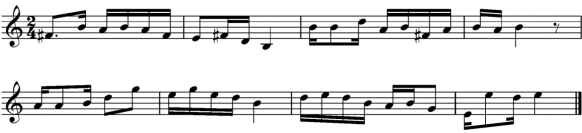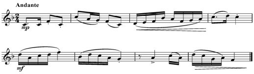 单声部旋律:高音谱表;8小节;调号为一升或一降;音域为f-a2以内。
