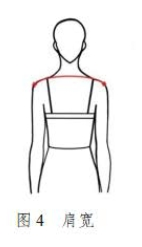 考生直立,双臂自然下垂,肩部放松,头部面向正前方。测量人员测量左右肩峰点(肩胛骨的肩峰外侧缘上,向外最突出的点,即肩膀两侧骨骼最外侧位置)之间的水平弧长。测量时不可过度扩肩或含肩,以免影响测量结果(见图4)。