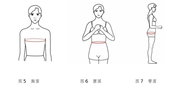 考生直立,双臂自然下垂,肩部放松,正常呼吸。测量人员测量经肩胛骨、腋窝和乳头的最大水平围长。测量时均匀呼吸,保持平静状态,不可过度吸气挺胸或呼气含胸(见图5)。