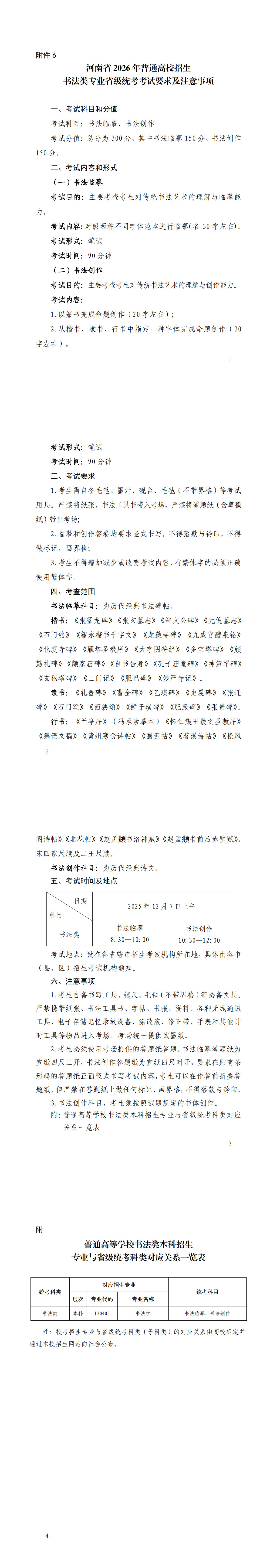河南省 2026 年普通高校招生书法类专业省级统考考试要求及注意事项