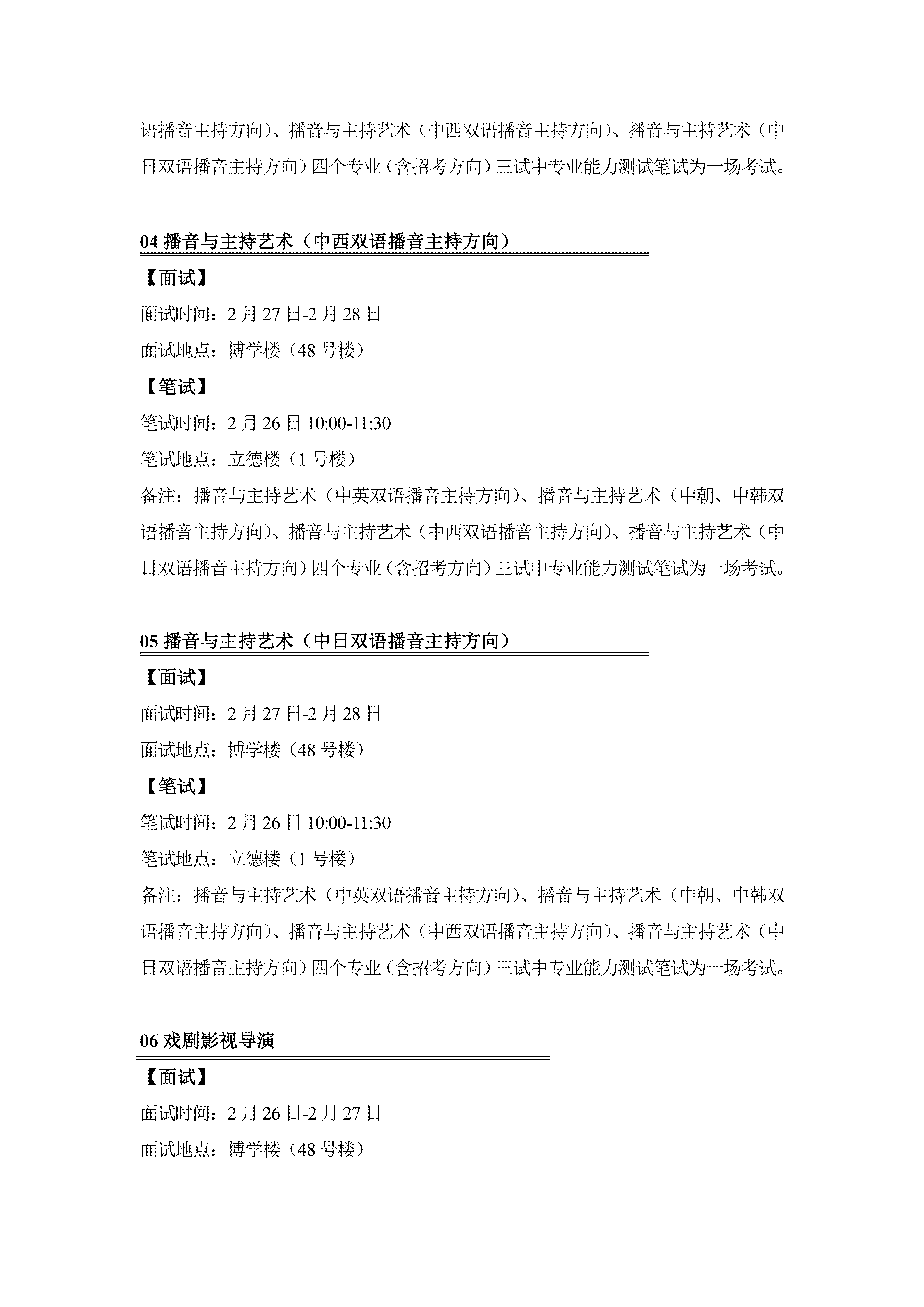 中国传媒大学2026年艺术类本科校考专业招生考试三试须知