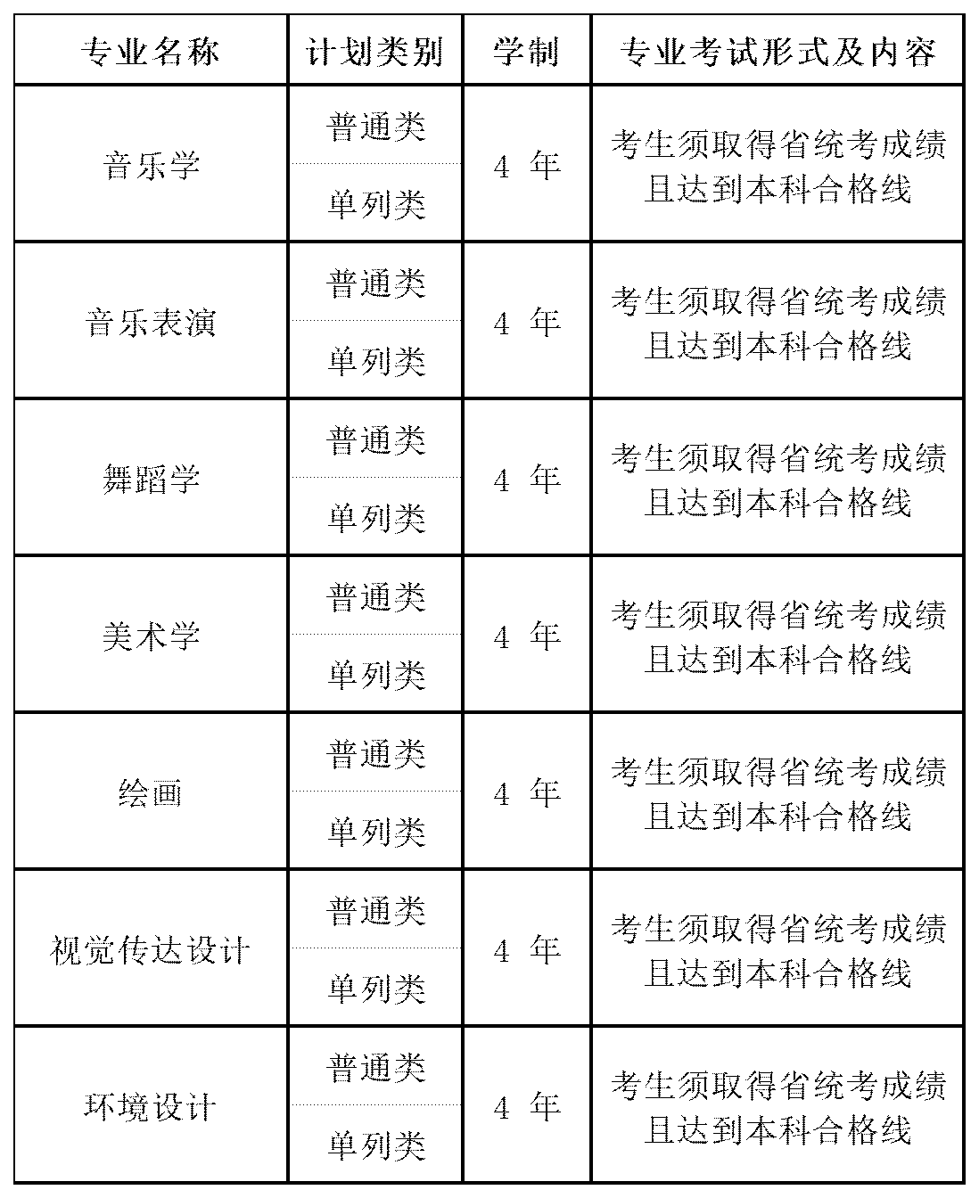 2.报考我校艺术类本科专业的考生,须参加本省(自治区、直辖市)艺术类相关专业统考并达到本科合格线。