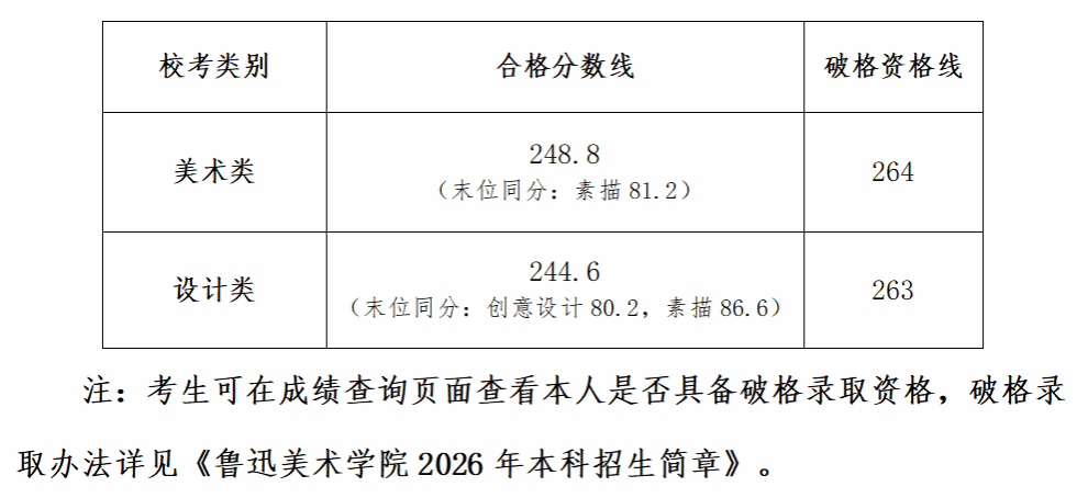 鲁迅美术学院2026年本科招生复试成绩查询及合格分数线公告